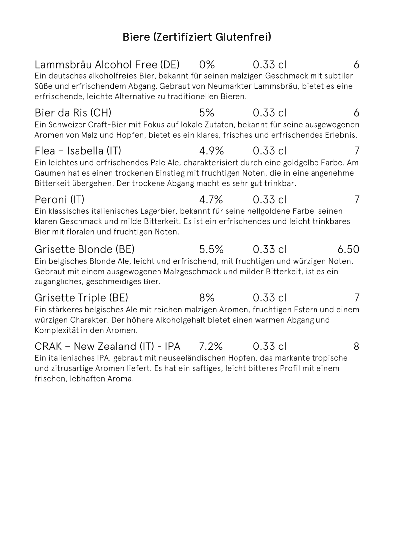 Biere (Zertifiziert Glutenfrei)